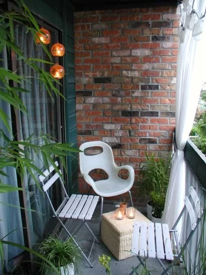 إذا كانت الشرفة ذات عرض قليل ليست شرفة ضيقة وطويلة ، اختر حل للزاوية مثل وضع أريكة أو مقعد بهذه الطريقة يمكنك الاستفادة من عرض الشرفة واستغلال الفضاء بشكل أفضل.