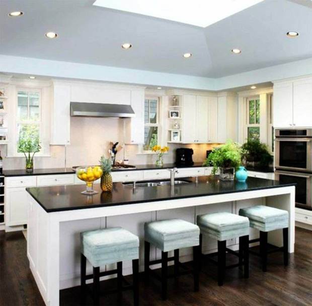 اذا كان مطبخك مفتوحا على غرفة المعيشة، يمكنك وضع الطاولة كفاصل بين المطبخ و غرفة المعيشة مع وضع الكراسي في اتجاه غرفة المعيشة و ليس في اتجاه المطبخ.